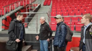 Экскурсию для ребят провёл методист спортивной школы Владимир Сибиркин, который подробно рассказал о работе школы, тренировочном процессе и жизни спортивного комплекса.