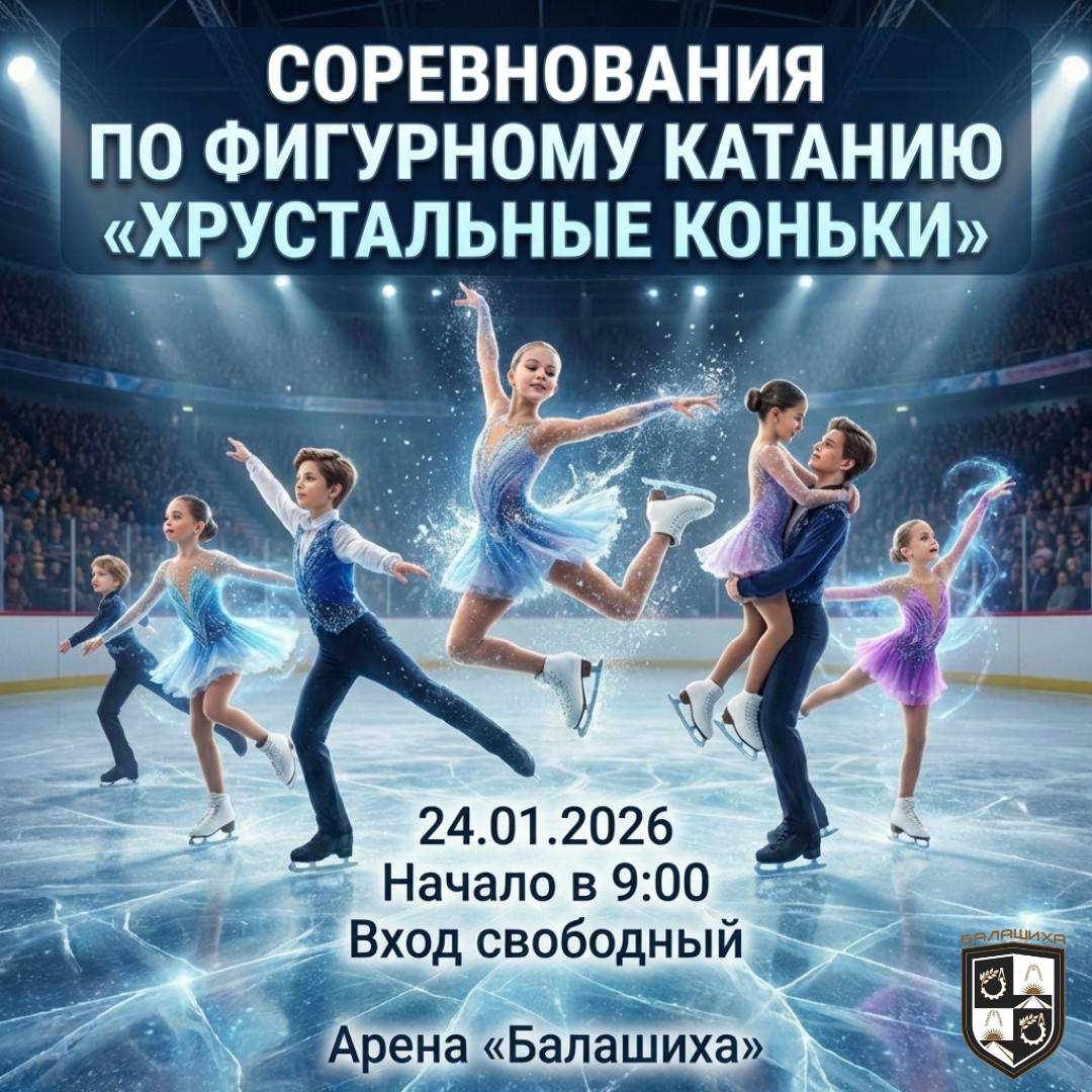 ⛸ Приглашаем на соревнования по фигурному катанию «Хрустальные коньки» 24 января 2026 года в Арена «Балашиха» состоятся спортивные соревнования по фигурному катанию на коньках «Хрустальные коньки».